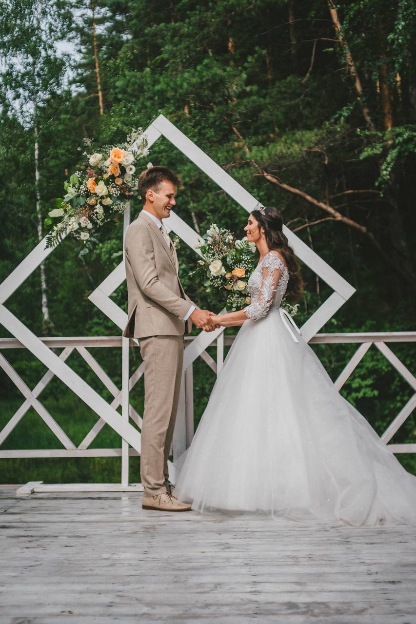 Думаю, настало время написать отзыв. Для начала хотим поблагодарить вас и вашу команду за хорошо проделанную работу. Все было просто шикарно! У меня в голове была чёткая картинка оформления своей свадьбы и вы ее в точности воплотили. Очень понравилось насколько все детально мы с вами обсуждали, все предпочтения были учтены. В вашу капсулу прям включено все самое необходимое и даже больше. Фотозона просто идеально вписалась, она влилась в лесную атмосферу и добавила нотку индивидуальности на площадке. А эти гирлянды, свечи боже как же сказочно они смотрелись вечером! Я рада, что мы друг друга поняли и я полностью вам доверилась без грамма сомнений. Не смотря на то, что у меня так и не получилась ещё раз с вами встретиться. Букет невесты и бутоньерка это прям отдельная благодарность. очень красиво и гармонично. Маленькая открыточка с шоколадочкой порадовали не меньше. Молодцы, что уделяете внимание таким мелочам. В день свадьбы даже такие маленькие приятности очень много значат. Ну и на утро, когда мне сказали, что все цветочные композиции со стола молодожёнов и арки мы забираем с собой, я прям была в шоке. Вся эта красота будет ещё и у нас дома? Серьезно? В общем ещё раз большое спасибо вам и всей вашей команде, мы были приятно удивлены и ни разу не пожалели, что обратились и именно к вам. Будем теперь рекомендовать только вас.